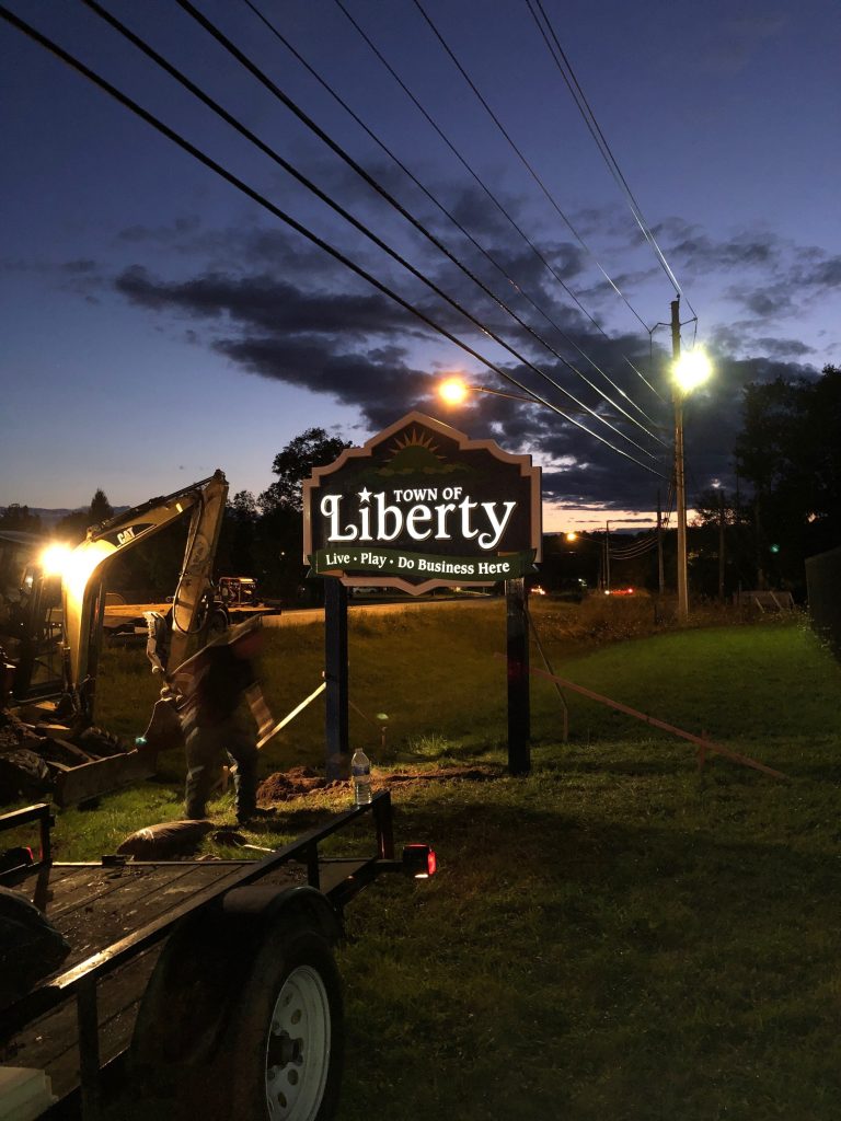 LIBERTY, N.Y. (October 10, 2019) – The Town of Liberty has announced that Phase 1 of its sign blight initiative, undertaken in partnership with the Village of Liberty, has been completed. Town of Liberty Councilmen and Village of Liberty Trustees have worked collaboratively from the design and planning stages, through funding and implementation to replace outdated – and in some cases dilapidated – signage with new, visually appealing installations that have been completely grant funded.